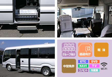 乗降しやすい補助ステップを装備しています。100VとUSBコンセントも各列横部に装備しています。【 Wi-Fi 使用可能車 】